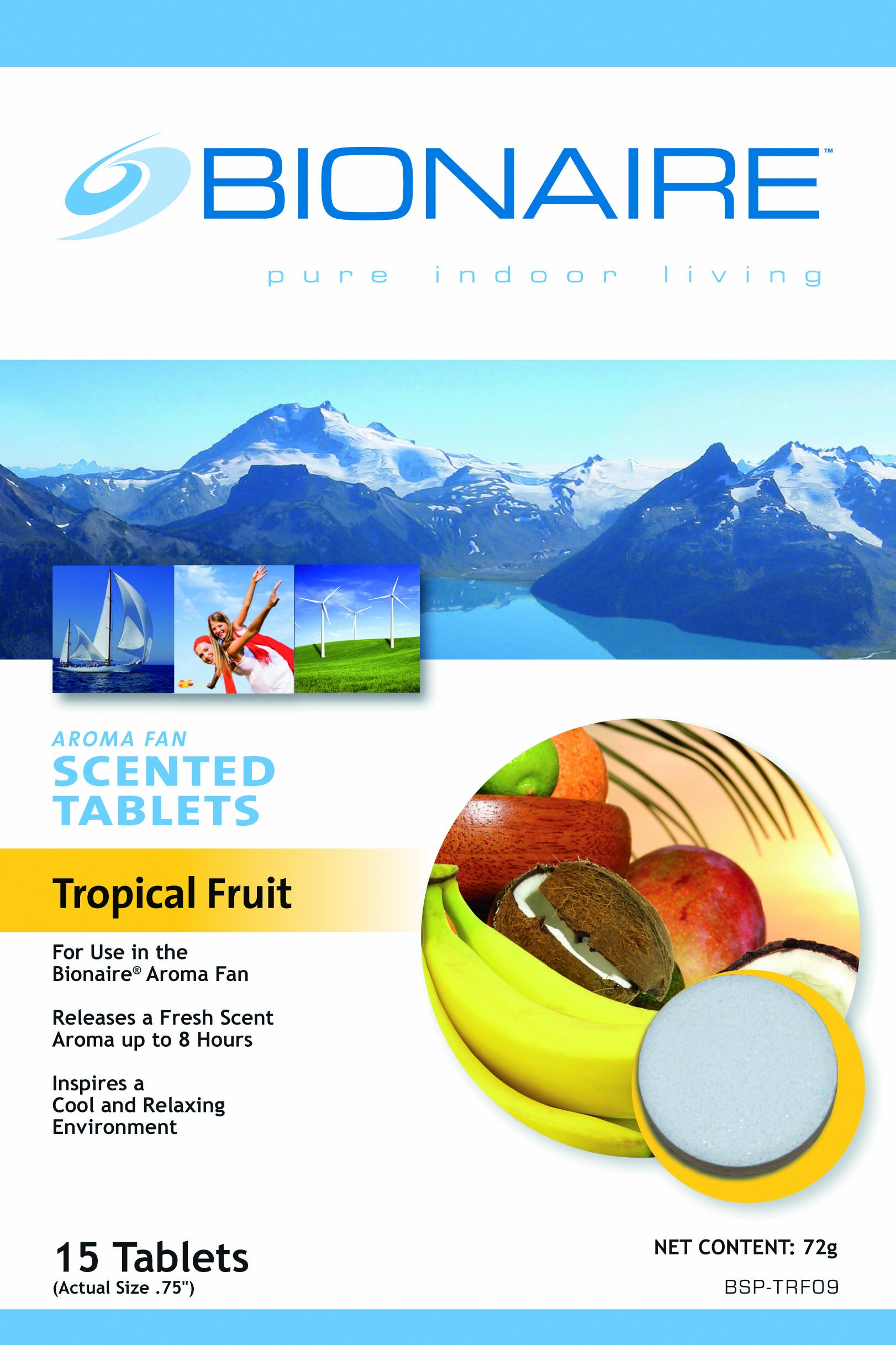 The Bionaire BSP-TRF09-U Scent Fan Pouches provide a tropical fruit aroma designed to enhance your living space. These scent tablets are intended for use with compatible Bionaire fan models, offering a flameless and safe alternative to traditional air fresheners.